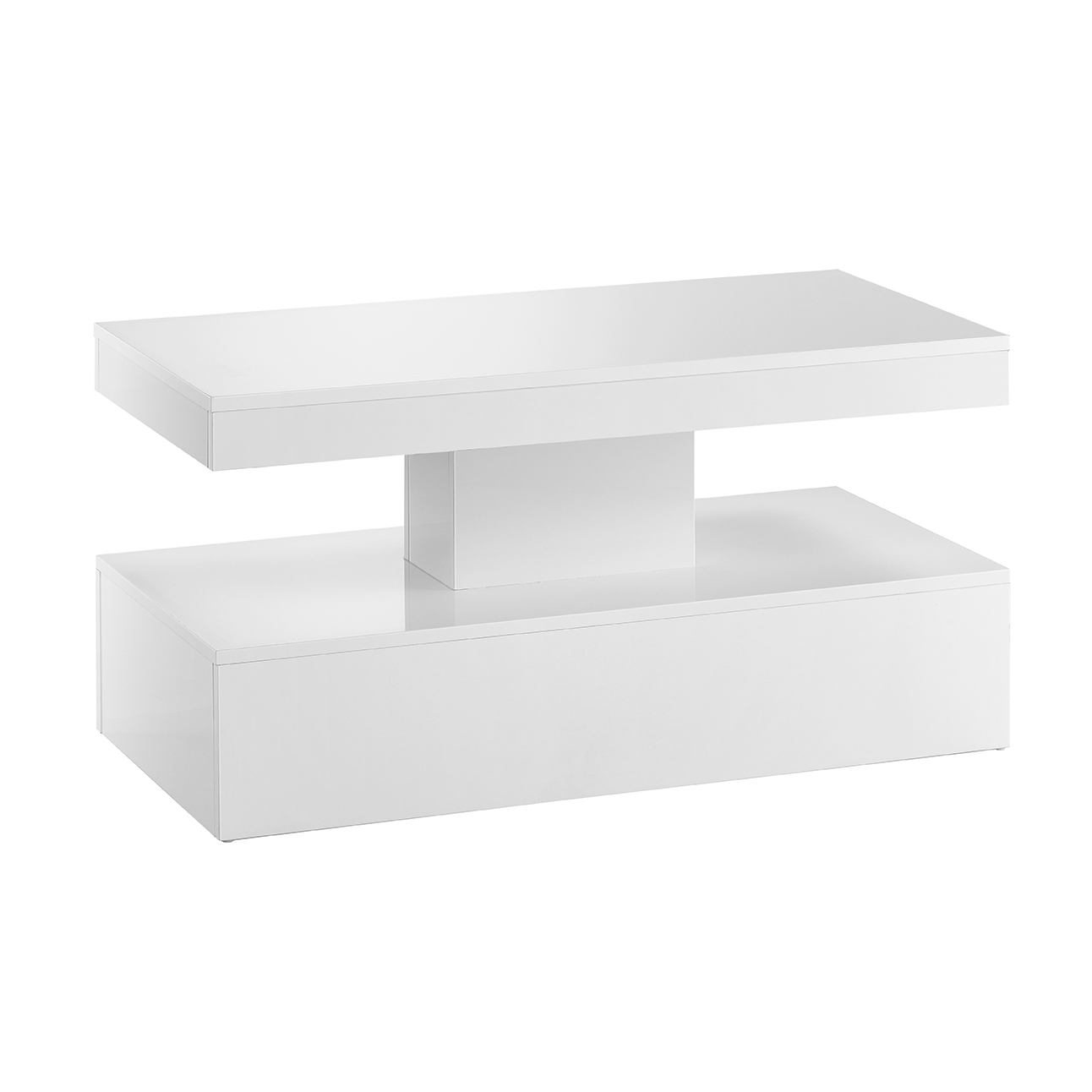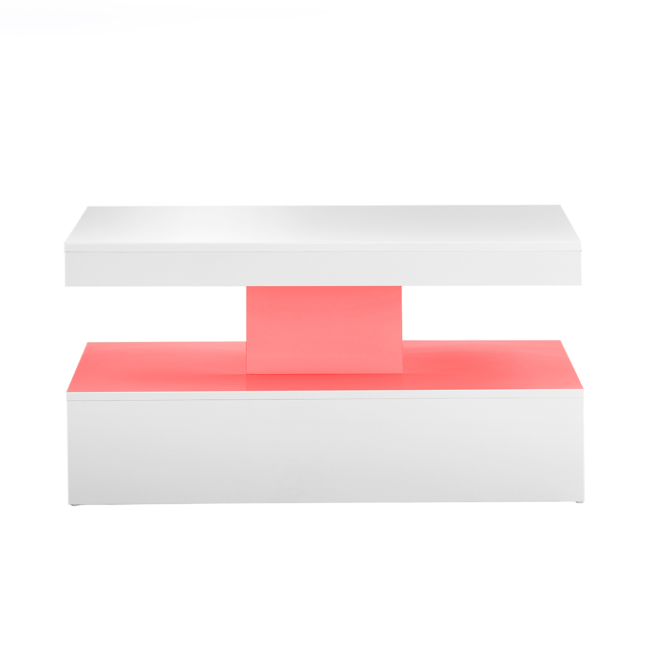 Crafted from high-quality white laminate board, this coffee table is not only visually appealing but also durable and long-lasting. Its rectangular shape and LED lights create a captivating focal point in your living room, making it a versatile and functional piece of furniture.